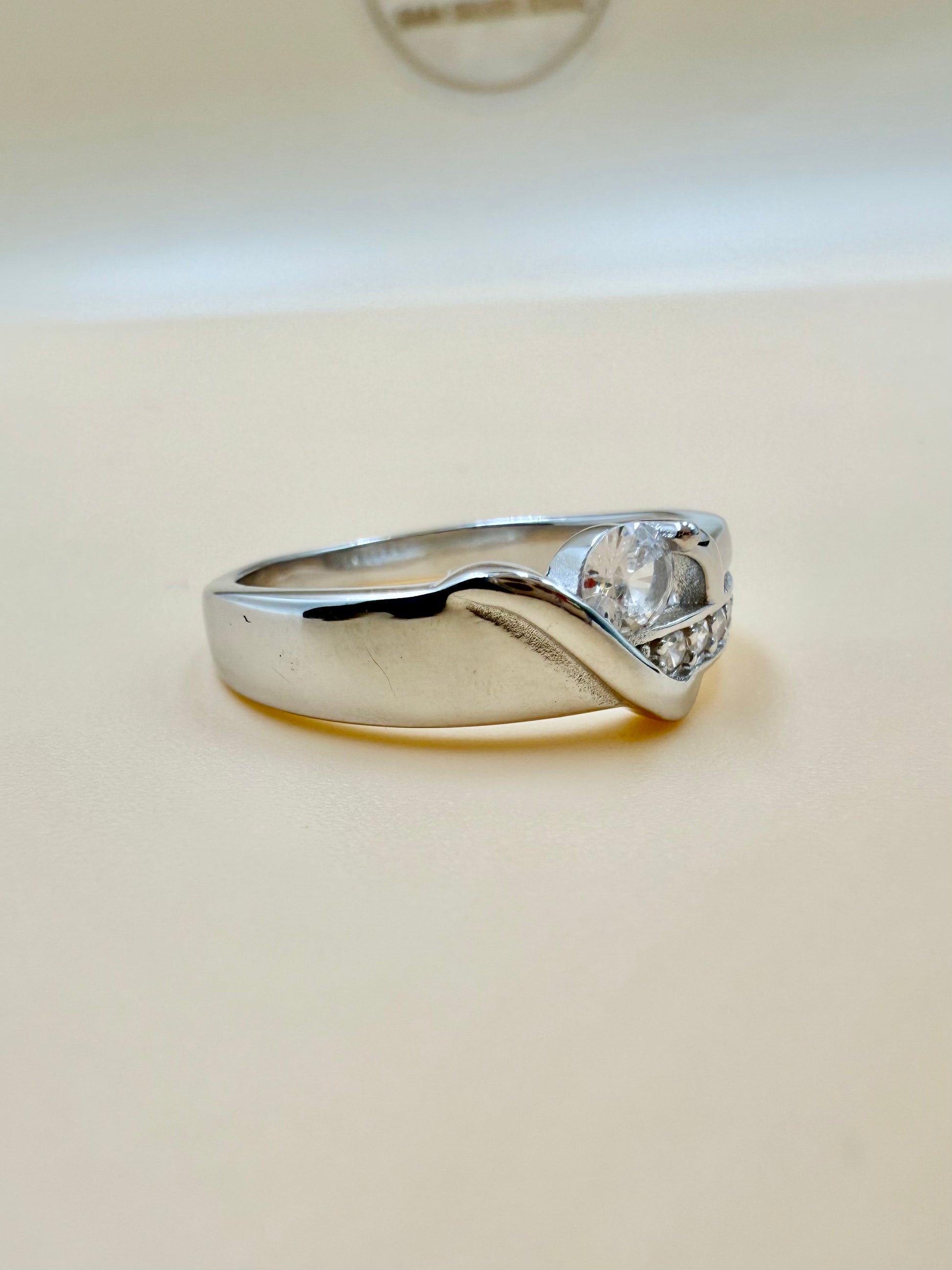 Add a touch of timeless sparkle to any outfit with this beautifully crafted ring. A brilliant white zircon stone sits at the center, catching light from every angle, while the polished metal band enhances its radiant glow. Perfect for daily elegance or special occasions, this piece offers classic style and modern sophistication.